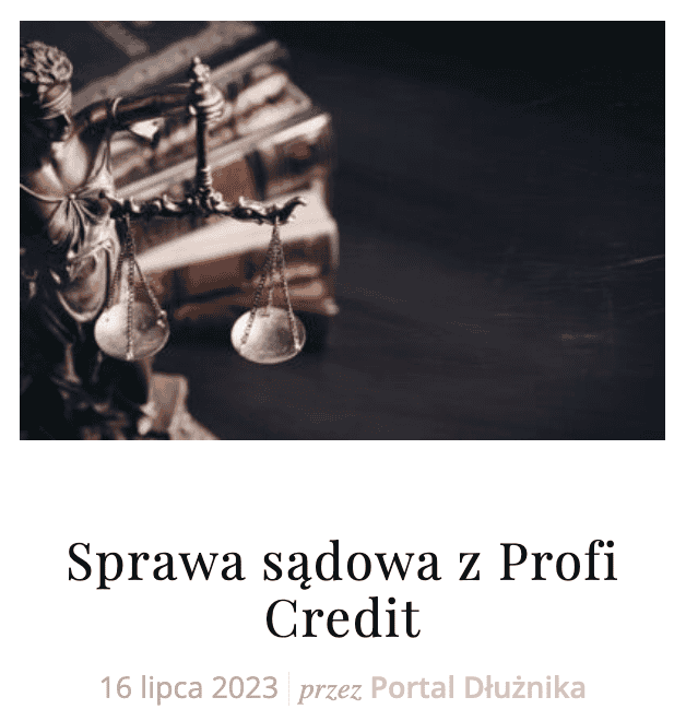 Inna ostatnio wygrana sprawa z Profi Credit: