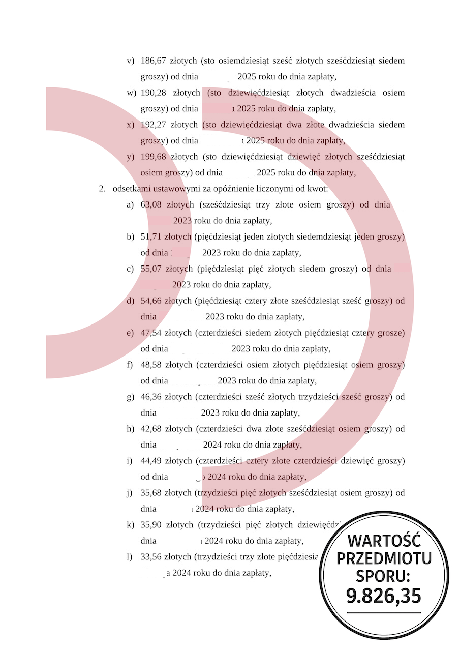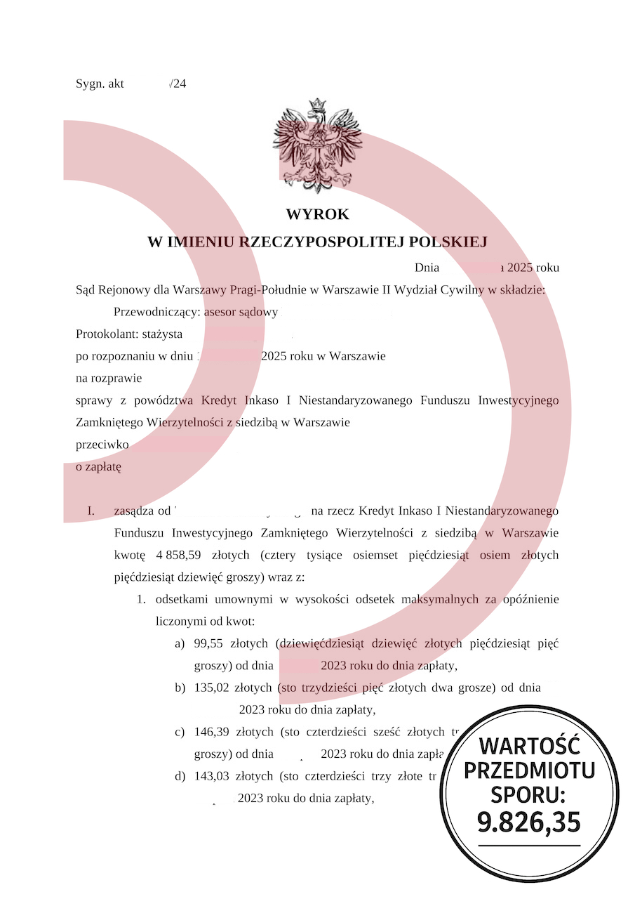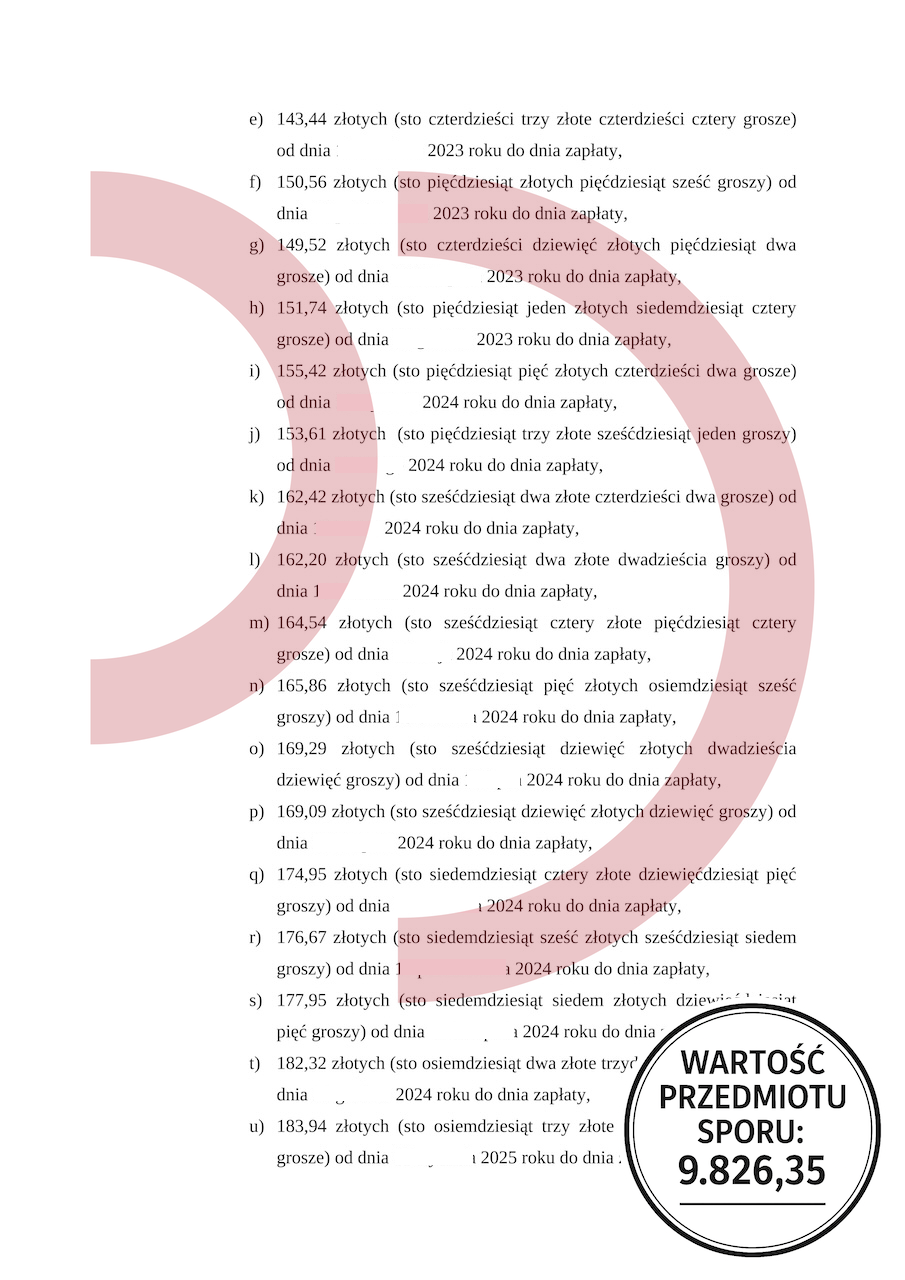 Zadanie: Sprzeciw od nakazu zapłaty, obrona procesowa