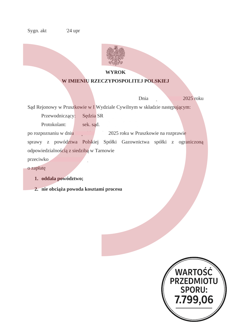 Wielu zadłużonych Polaków zastanawia się, jak bardzo skomplikowany jest proces oddłużania i czy warto w ogóle zaczynać walkę z wierzycielami. Często wydaje się, że długi to temat nie do rozwiązania, a windykacja i pozwy sądowe są jedynie kwestią czasu. Tymczasem rzeczywistość pokazuje, że skuteczne oddłużanie może przynieść zaskakujące rezultaty — zwłaszcza gdy sprawą zajmują się doświadczeni prawnicy. W ostatnim czasie Kancelaria Oddłużeniowa Łukasza Białkowskiego wygrała sprawę przeciwko Polskiej Spółce Gazownictwa, gdzie wartość przedmiotu sporu wynosiła 7.799,06 zł. Sąd Rejonowy w Pruszkowie oddalił powództwo w całości, uznając, że żądanie zapłaty było niezasadne. To doskonały przykład na to, że nawet zwykłe rachunki za gaz mogą budzić poważne wątpliwości prawne, a proces oddłużania — choć złożony — może zakończyć się pełnym sukcesem.