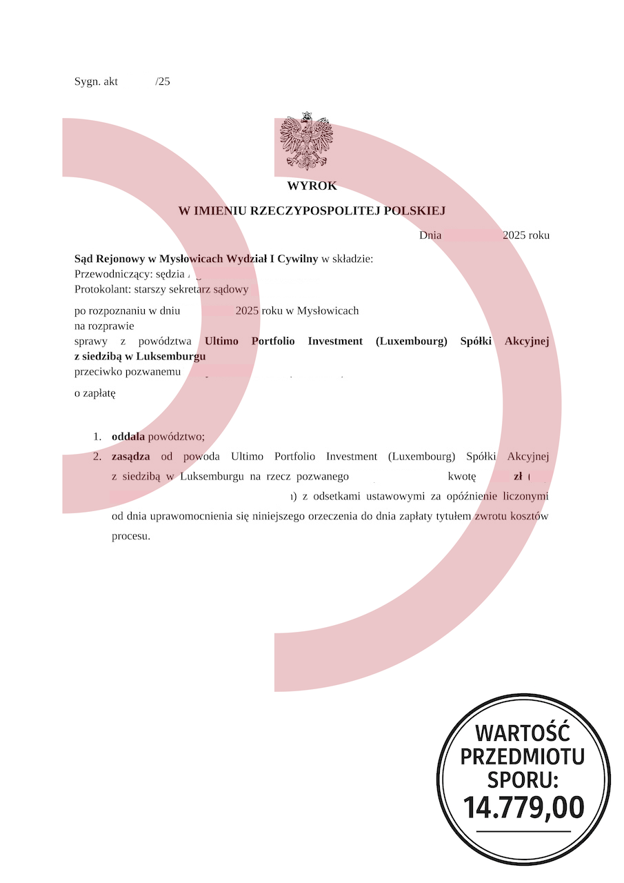 Wartość przedmiotu sporu: 14.799,00 zł zł
