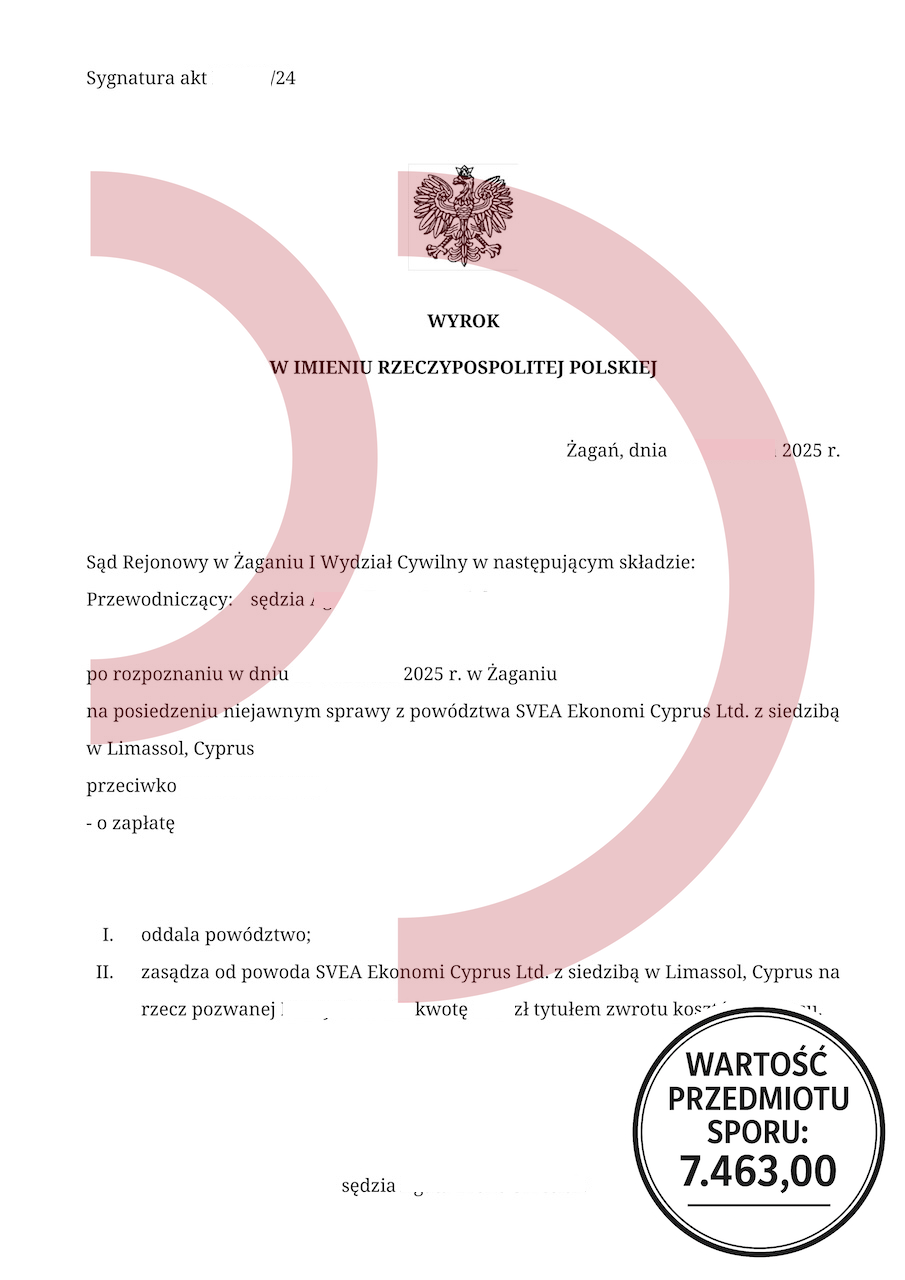 Powód: Svea Ekonomi Cyprus Ltd.