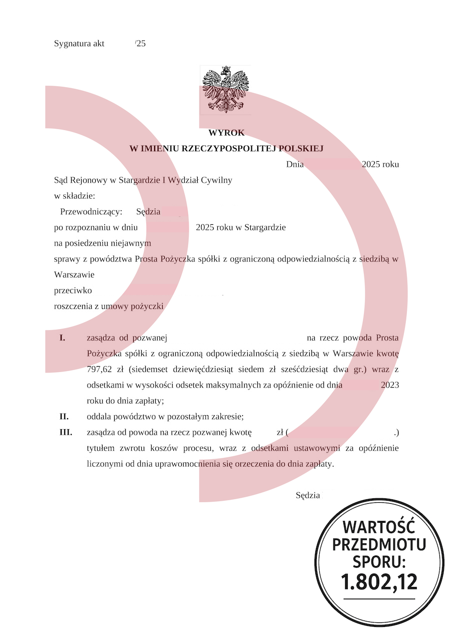 Uzyskany efekt: Powództwo oddalone w części, zasądzono 797,62 zł