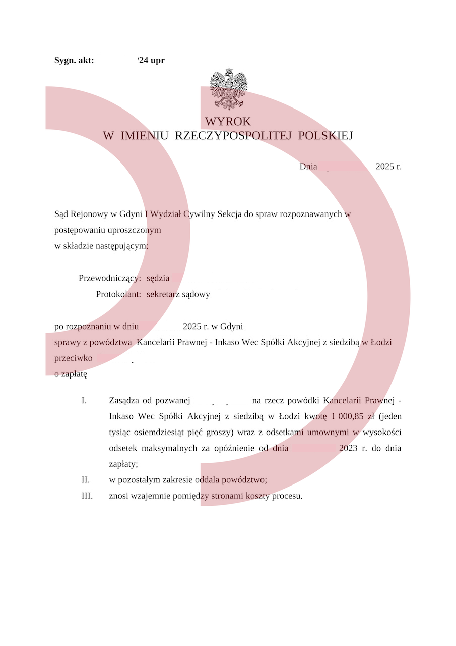 Powód: Kancelaria Prawna Inkaso WEC S.A.