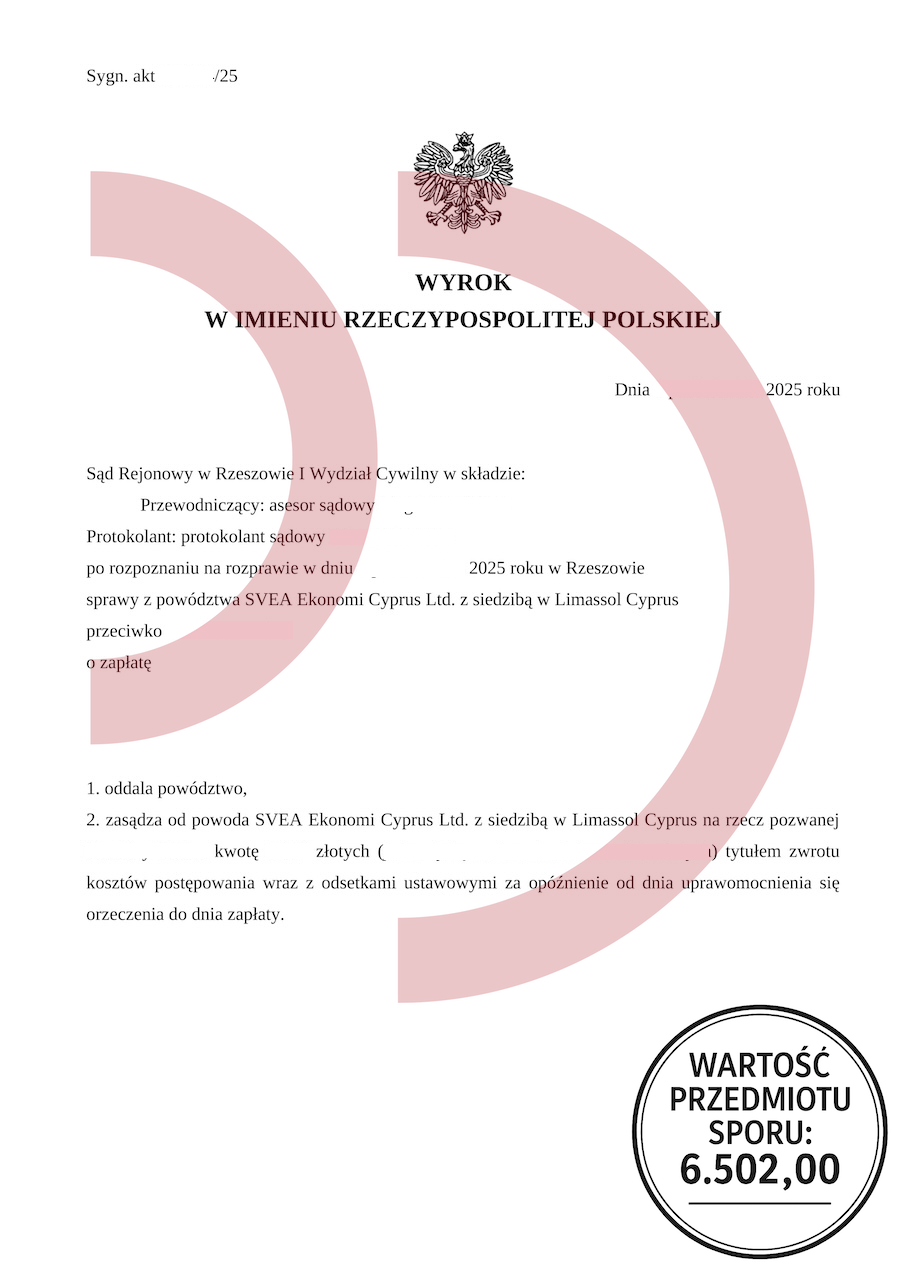 Powód: Svea Ekonomi Cyprus Ltd.
