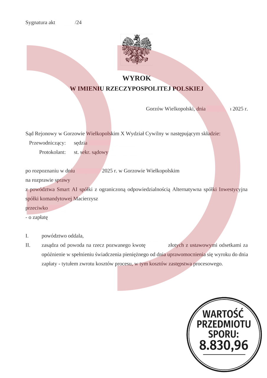 Powód: Smart AI Sp. z o.o. Alternatywna Spółka Inwestycyjna Sp. k.