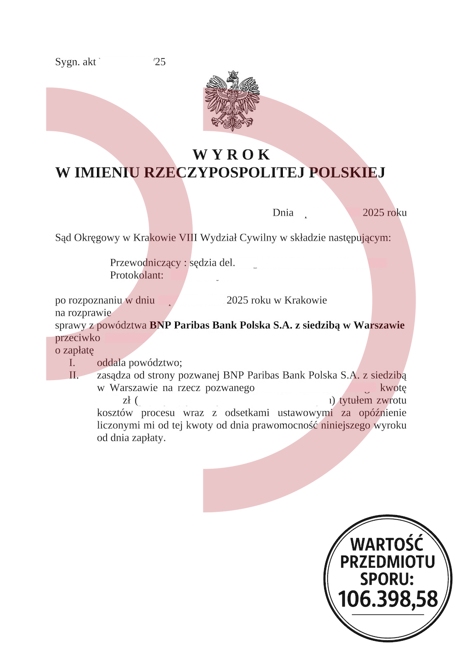 Gdy na koncie pojawia się zajęcie, a wynagrodzenie znika, dłużnik traci nadzieję. Ale to właśnie wtedy trzeba wiedzieć, jak spłacić długi skutecznie i szybko. Kancelaria Łukasza Białkowskiego w takich sytuacjach reaguje błyskawicznie - składa sprzeciw i dba o to, by postępowanie zostało przeanalizowane, jak należy. Często okazuje się, że dług był sprzedany bezprawnie, a wierzyciel nie miał prawa dochodzić należności. Wtedy sąd – tak jak w przypadku jednego z klientów kancelarii – oddala powództwo w całości.