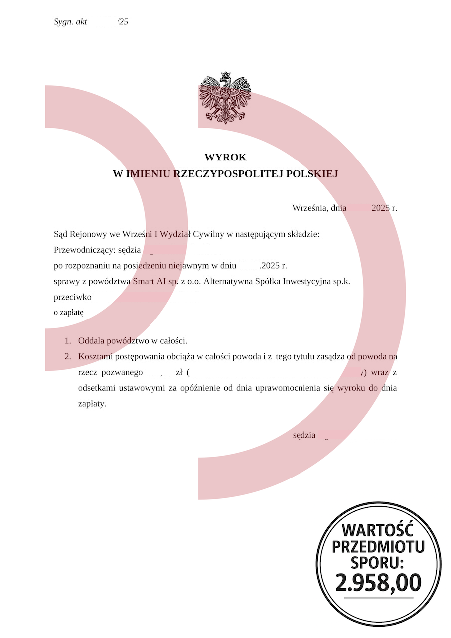 Powód: Smart AI Sp. z o.o. Alternatywna Spółka Inwestycyjna Sp. k.