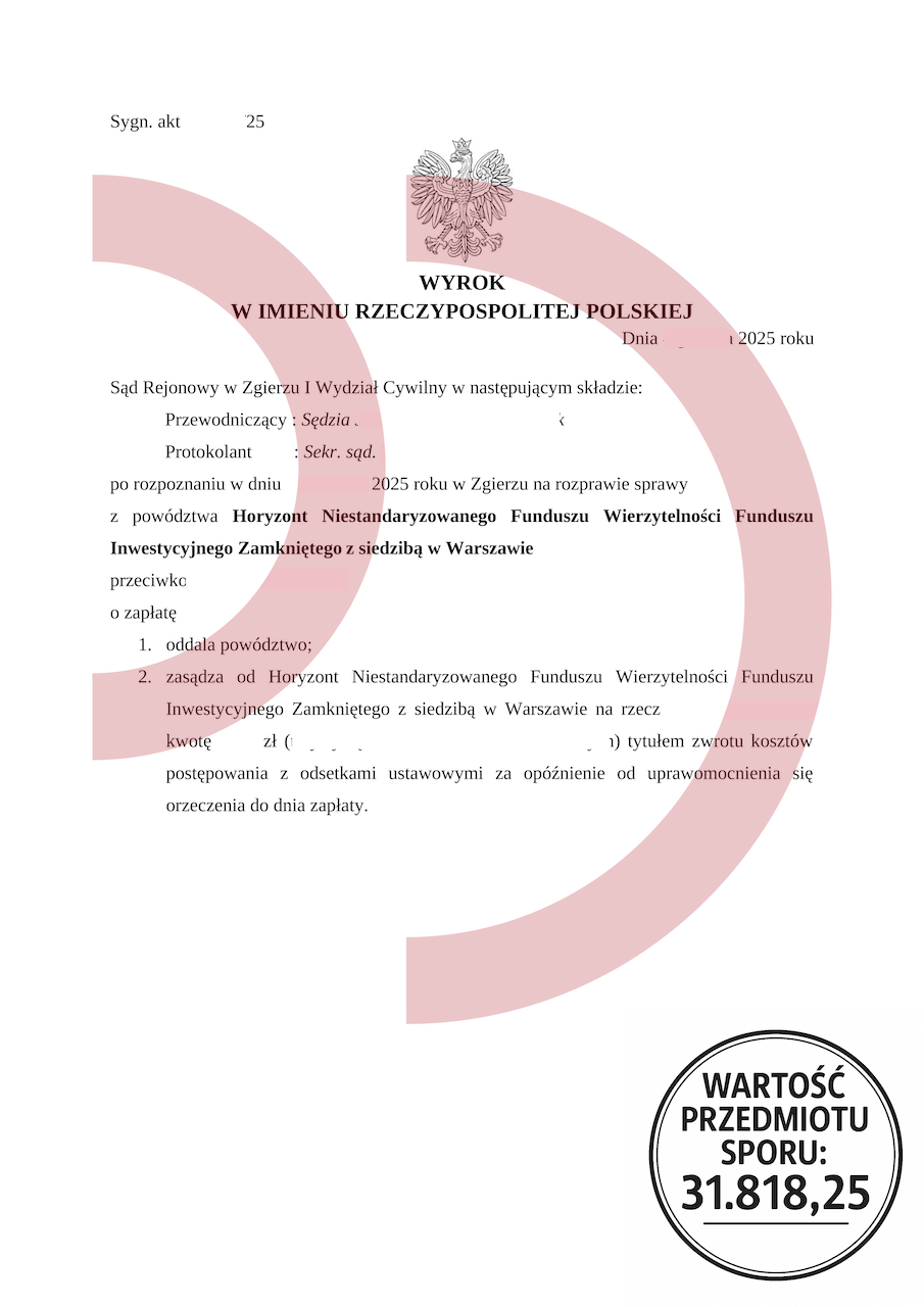 Coraz więcej osób uwikłanych w spiralę pożyczek krótkoterminowych szuka sposobu, aby wreszcie przerwać ciąg narastających rat, refinansowań i rosnących odsetek. Niestety samodzielne próby wyjścia z problemu często kończą się jeszcze większym zadłużeniem. Dlatego to właśnie skuteczna pomoc z długami w chwilówkach staje się dla wielu konsumentów jedyną realną szansą na odzyskanie kontroli nad finansami. Profesjonalna analiza dokumentów, podważenie nienależnych kosztów i rozliczeń, a przede wszystkim obrona w sądzie — to działania, które potrafią diametralnie odmienić sytuację dłużnika. Doskonale pokazuje to załączony wyrok, w którym Sąd Rejonowy w Zgierzu oddalił powództwo funduszu sekurytyzacyjnego, obciążając go dodatkowo kosztami procesu. To mocny dowód na to, że skuteczna pomoc z długami w chwilówkach ma realny, wymierny efekt — nawet w sprawach, w których wierzyciel domaga się wysokich kwot, tak jak w tej o wartości przedmiotu sporu 31.818,25 zł.