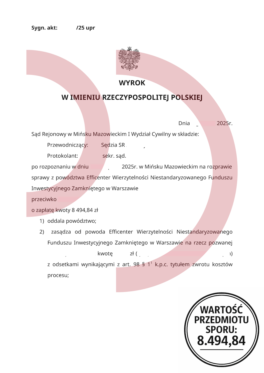 Pilna pożyczka dla zadłużonych bez baz – czy to naprawdę ratunek, czy pułapka? Kiedy banki odmawiają, a długi rosną z dnia na dzień, wiele osób zaczyna szukać ratunku w ofertach typu pilna pożyczka dla zadłużonych bez baz. To hasło obiecuje natychmiastową gotówkę, bez sprawdzania historii w BIK czy KRD. Brzmi jak wybawienie – szczególnie dla kogoś, kto nie ma już zdolności kredytowej. Niestety, takie pożyczki często prowadzą do jeszcze większych problemów. Klientka Kancelarii Łukasza Białkowskiego, pani Anna, sama przekonała się, że „łatwe pieniądze” mogą mieć wysoką cenę. Na szczęście prawnicy kancelarii udowodnili w sądzie, że jej zobowiązanie było niezgodne z prawem. Sąd oddalił powództwo wierzyciela w całości.