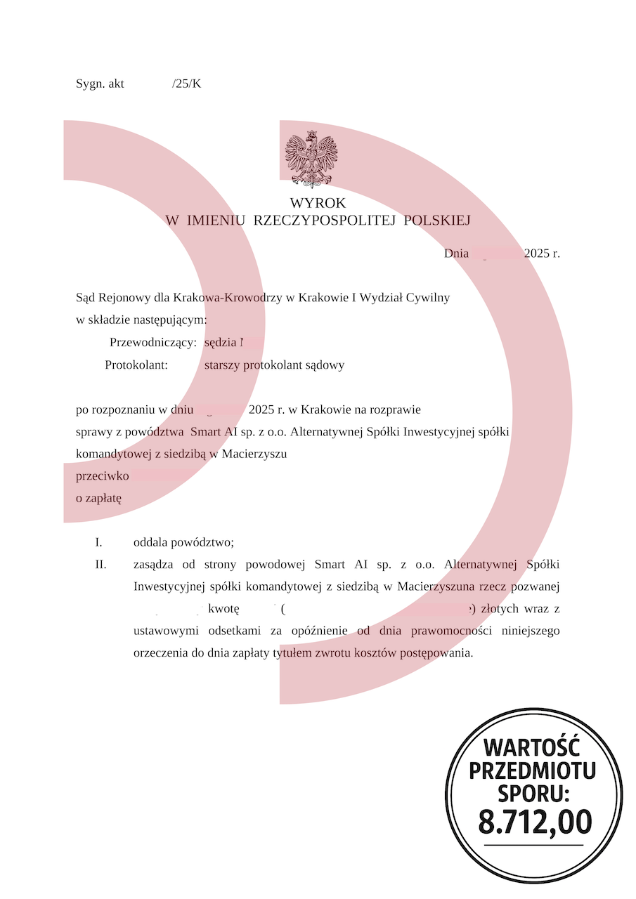 Powód: Smart AI Sp. z o.o. Alternatywna Spółka Inwestycyjna Sp. k.