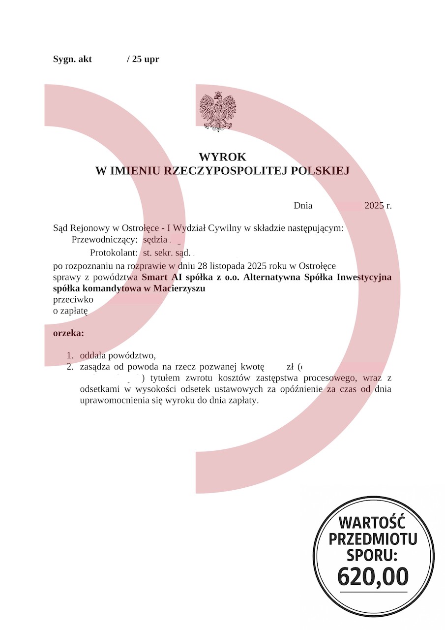 Powód: Smart AI Sp. z o.o. Alternatywna Spółka Inwestycyjna Sp. k.