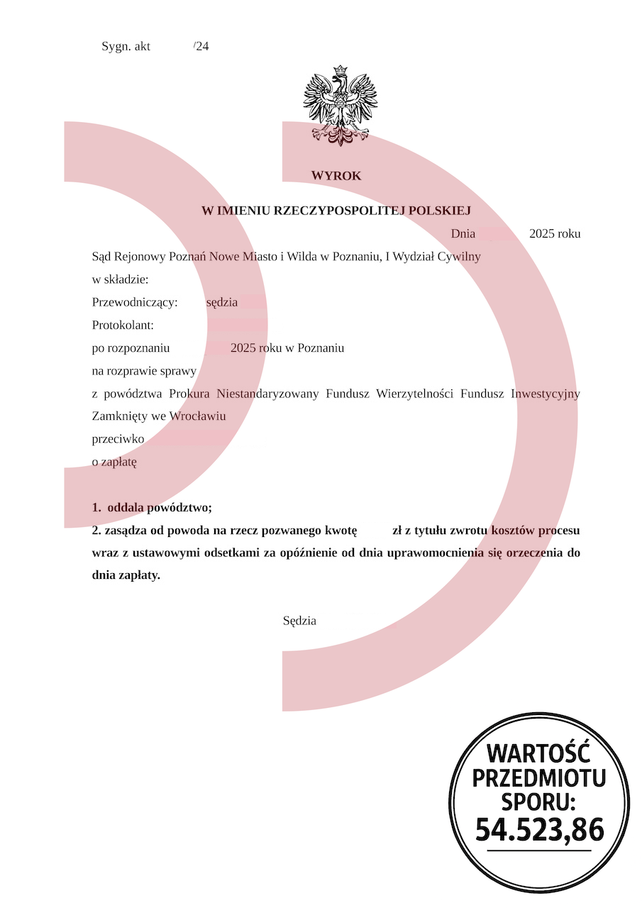 Dla wielu osób sąd jest synonimem porażki, jednak oddłużanie to realna droga do wolności finansowej właśnie dzięki postępowaniom sądowym. Wbrew obawom dłużników, sądy coraz częściej stają po stronie konsumentów, jeżeli roszczenia są nieuczciwe. W sprawie klienta kancelarii sąd szczegółowo przeanalizował argumenty prawników i uznał je za zasadne, oddalając powództwo wierzyciela w całości.