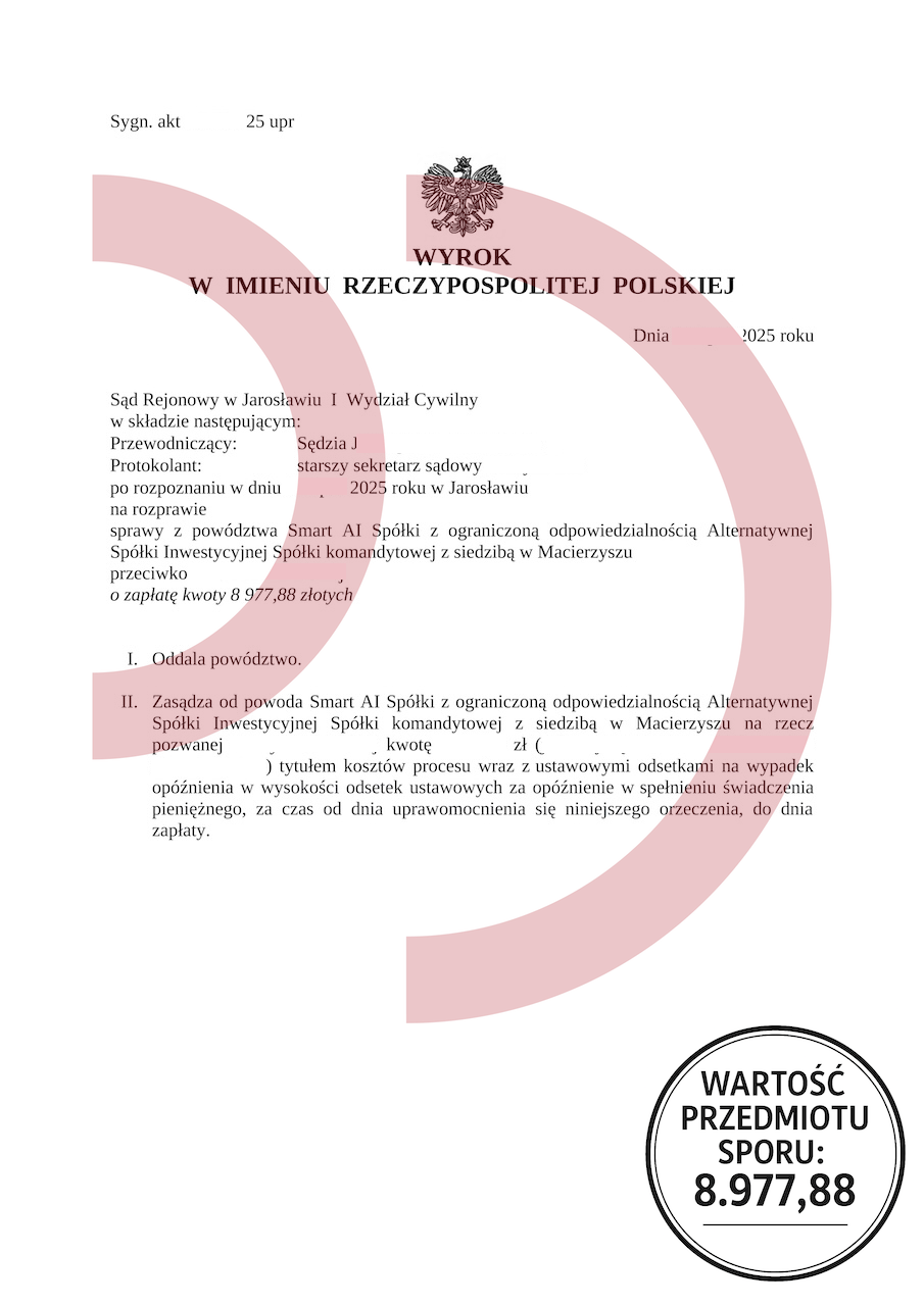Powód: Smart AI Sp. z o.o. Alternatywna Spółka Inwestycyjna Sp. k.